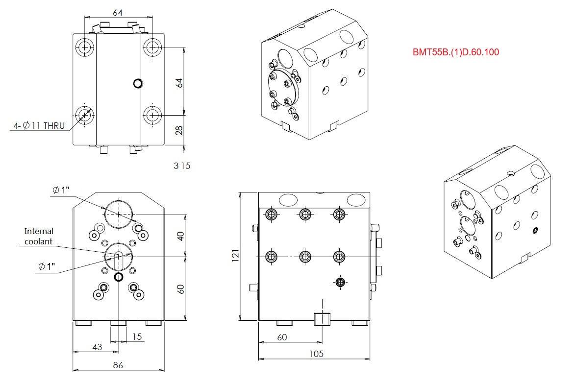 BMT55 ID DOUBLE (1)" inch BORING BAR HOLDER, HEIGHT 60-100mm
