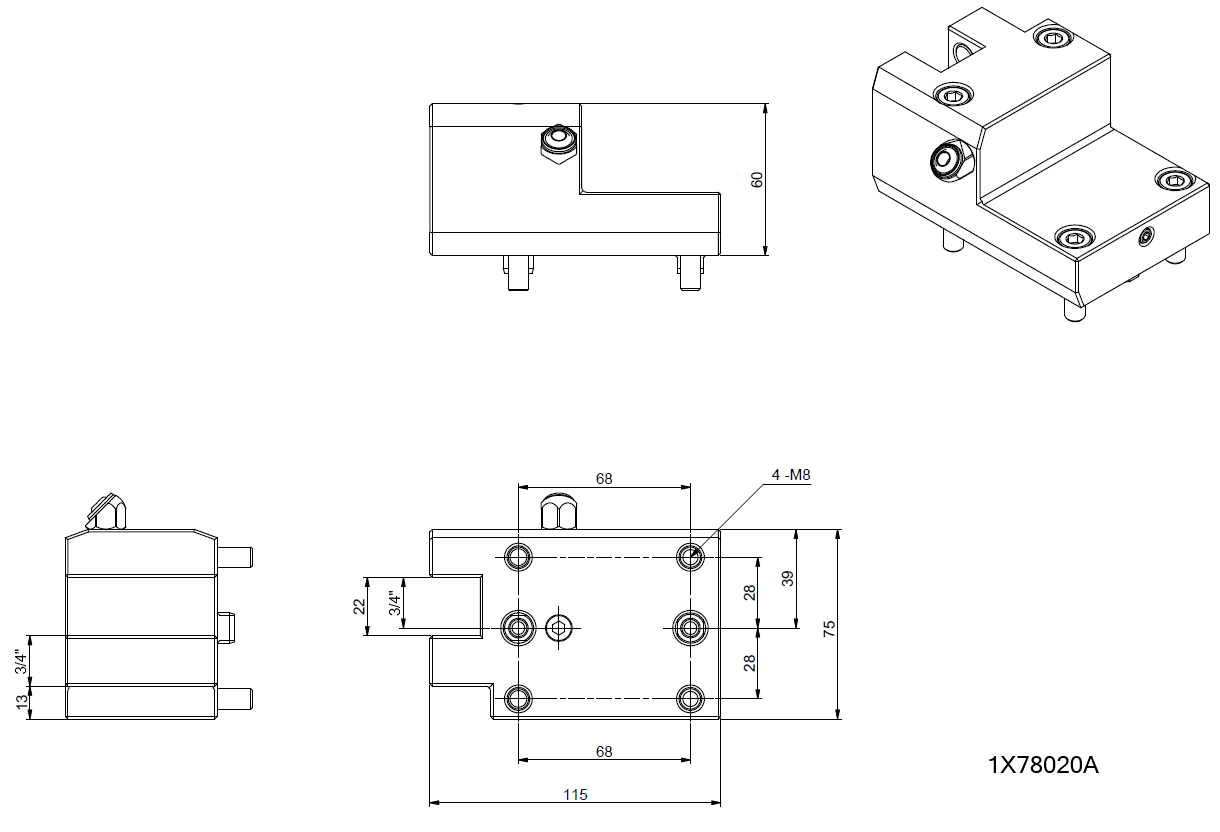 Details: MIYANO BMT45 Turning holder 3/4" for BNA/BNJ, Bolt Pattern 56X68mm, Reference code: 1X78020A, MYE900100