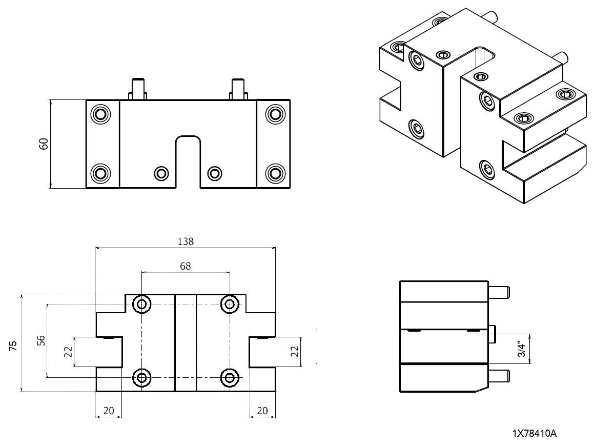 Details: MIYANO BMT45 Turning holder Double 3/4" for BNE/BNJ, Bolt Pattern 56X68mm, Reference code: 1X78410A