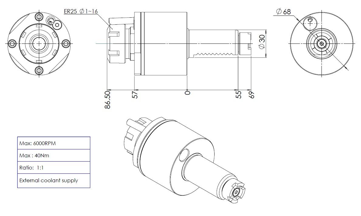 Details: OKUMA VDI30 AXIAL DRILLING MILLING HEAD ER25